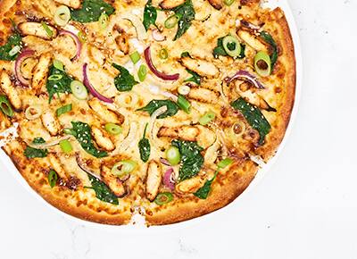 Cette pizza contient du poulet .