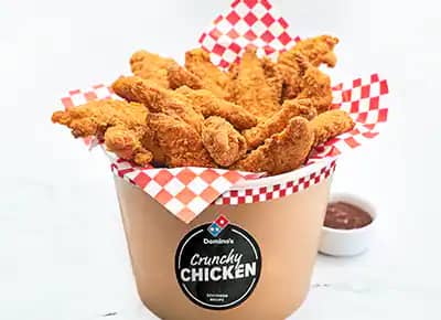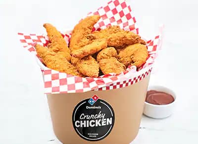 Que Domino's a de délicieuses pizzas, ça tout le monde le sait déjà. Mais saviez-vous que Domino's à aussi un délicieux poulet croustillant dans son menu ? Le Domino's Crunchy Chicken de Domino's est disponible en différentes tailles pour que vous puissiez le déguster à tout moment ! En guise d'en-cas, en accompagnement avec l'une de nos pizzas, à partager entre amis ou pour les vrais amateurs de poulet, seul ! Avec les différents buckets et repas, vous choisissez si vous voulez perfectionner les délicieuses saveurs de poulet avec une sauce pimentée ou une sauce BBQ.