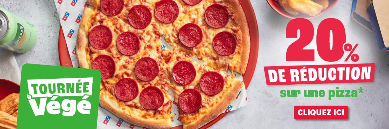 Cette année aussi chez Domino's, le mois de janvier est placé sous le signe des pizzas végétariennes et végétaliennes. De nombreux produits végétariens et végétaliens font partie de notre menu depuis longtemps et nous adorons les mettre en avant. Ainsi, du 4 au 31 janvier, bénéficiez d'une réduction de 20% sur toutes nos pizzas végétariennes et végétaliennes ! Par exemple, dégustez la pizza végétarienne Funghi ou optez pour la pizza entièrement végétalienne Vegan Veggi. Vous avez du mal à résister à la viande ? Alors cette fois, choisissez la pizza Vegeroni avec pepperoni végétarien du Boucher Végétarien !
